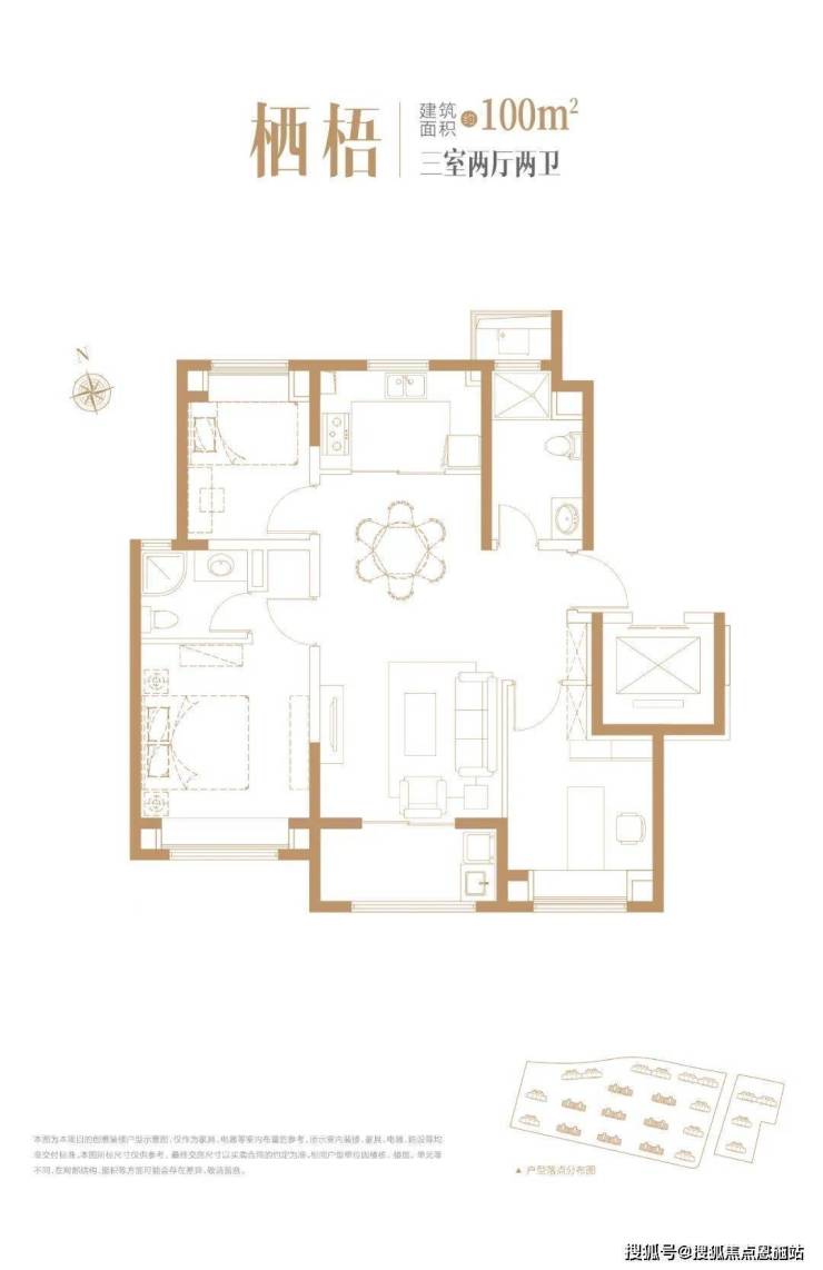 建面约100㎡3房2卫
