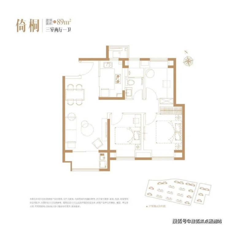 建面约89㎡3房1卫