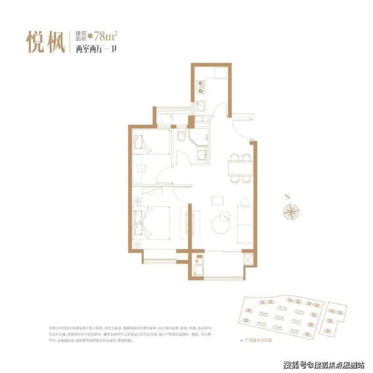 建面约78㎡2房1卫