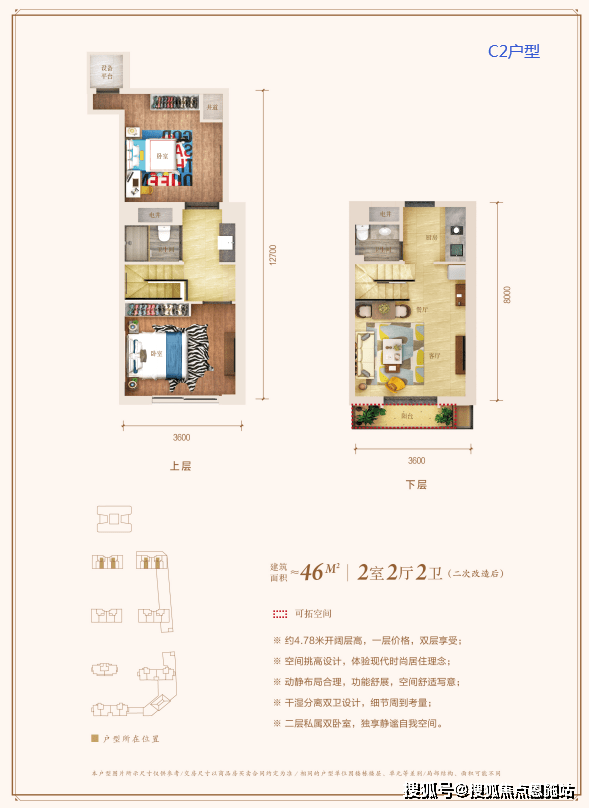 4.78米绝版层高,43-80方LOFT户型可供选择。