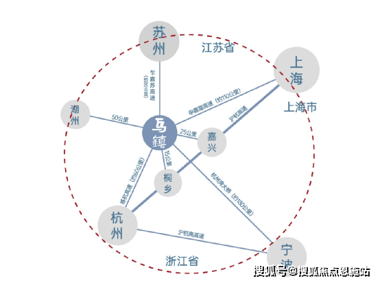 距上海110公里、杭州60公里、苏州65公里、宁波130公里,距嘉兴、桐乡、湖州均在50公里范围内;双高铁辐射,距离桐乡站约22公里、距离嘉兴南站约28公里。 四通八达、无往不利,最大程度地保留乌镇的静谧与灵性,又可与繁华接壤。