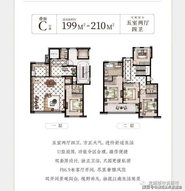 层层高3.1米,客厅挑高6.4米。其中上叠星空露