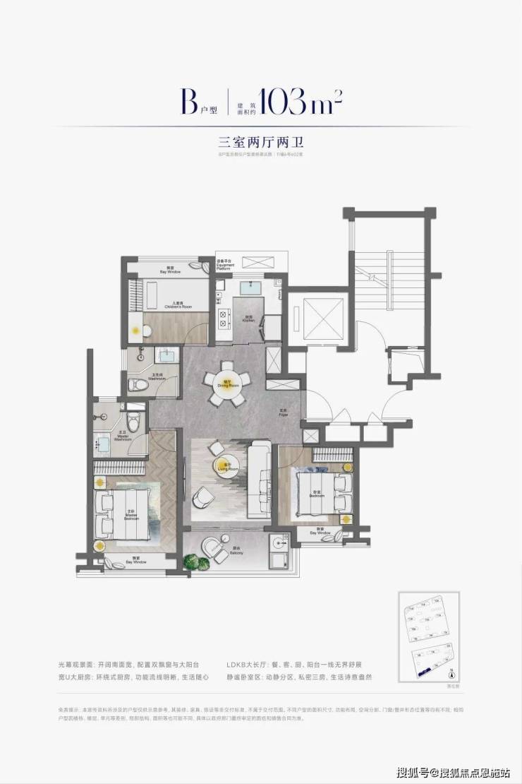 客厅大面宽+约270°观景,结合LDKB一体化设计,尺度感超强。