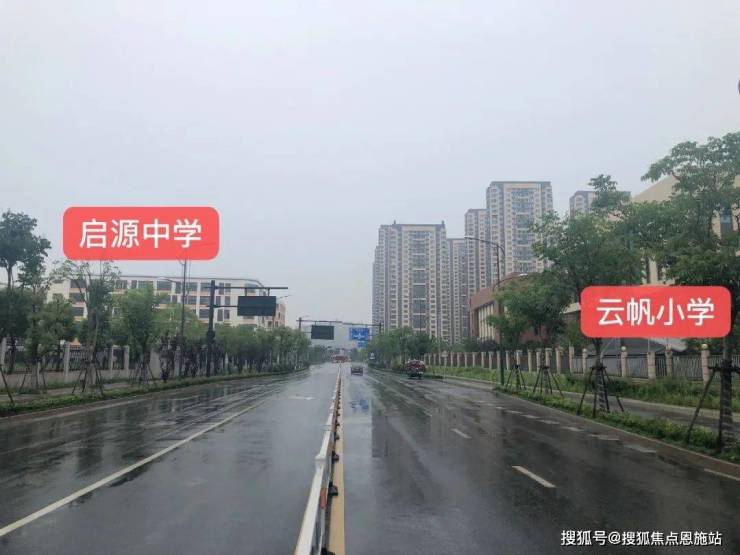 下面这张图可以看清楚启源中学(文海托管)和云帆小学之间的关系,前者在西面,后者在东面,一路之隔。