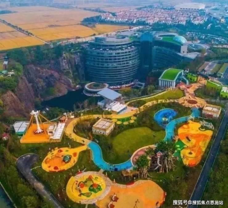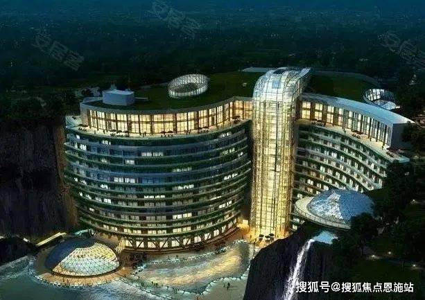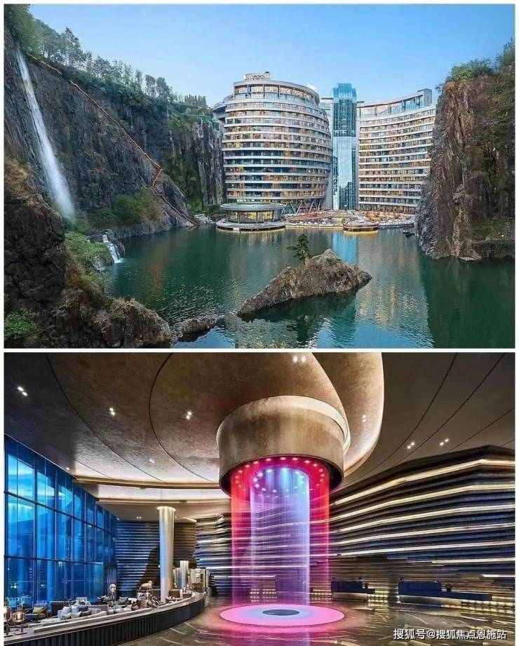 ”深坑酒店”是一座深大80米,周长千米、深百米的废弃采石场大坑。松江世茂纳米魔幻城根据规划,酒店的主体部分会建造于深坑的南侧崖壁上,另有两层建于深坑的水下,建成后将成为负70米的超五星级度假酒店。