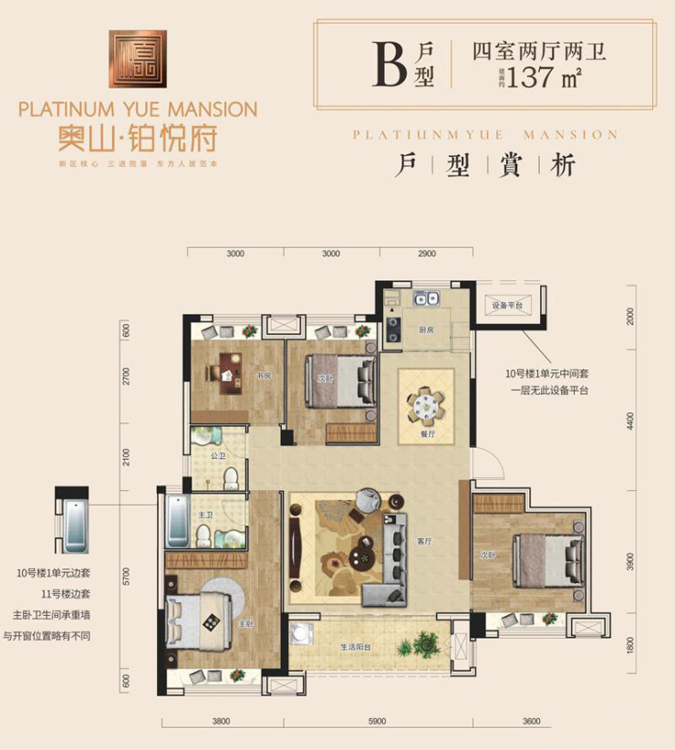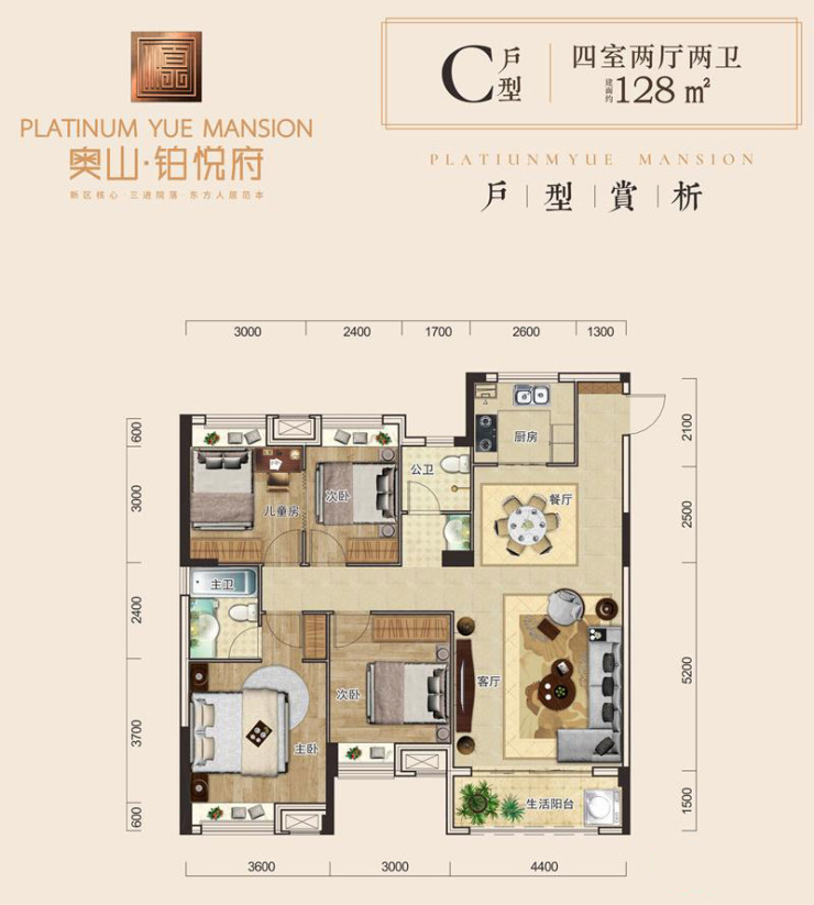 阔绰大四房,专梯入户,国风望族排场,5.9米超大开间会客厅,外接宽景阳台,卧室全飘窗设计,豪 华主卧套房,专属阳光“三味书屋”,享无限雅趣!