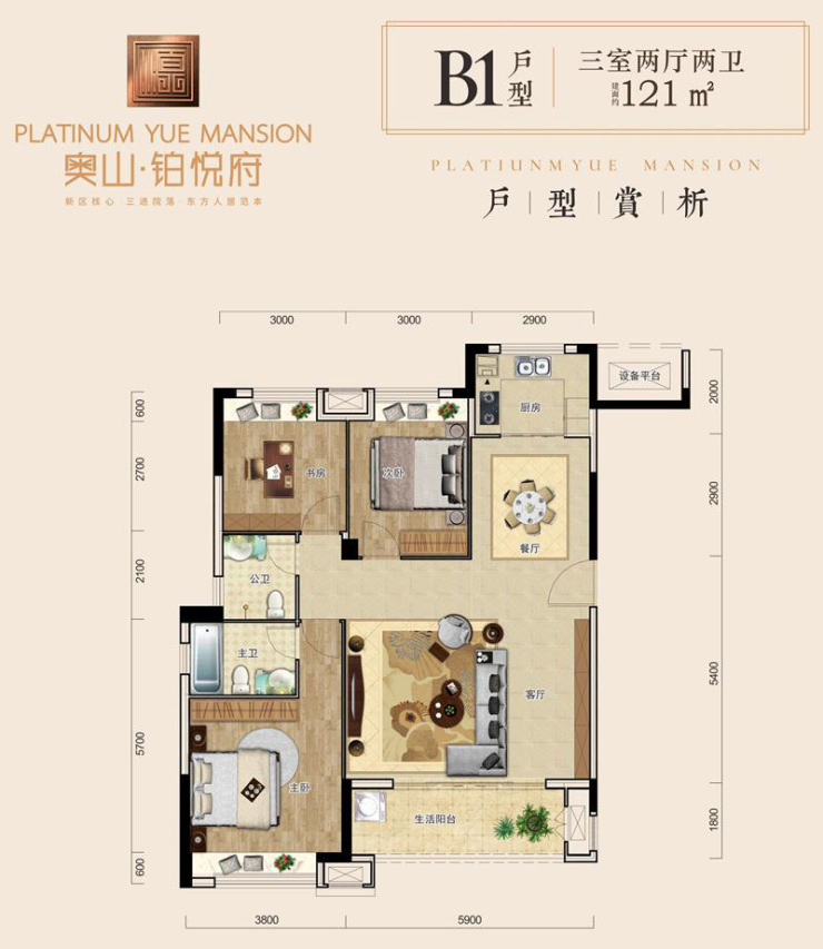 全能三房,动静分明,专梯入户,5.9米超大开间会客厅外接宽景阳台,U型厨房,符合人体工学原理,双卧双卫生间配置,细节周到考量,独立轩敞书房,自带阳光飘窗。