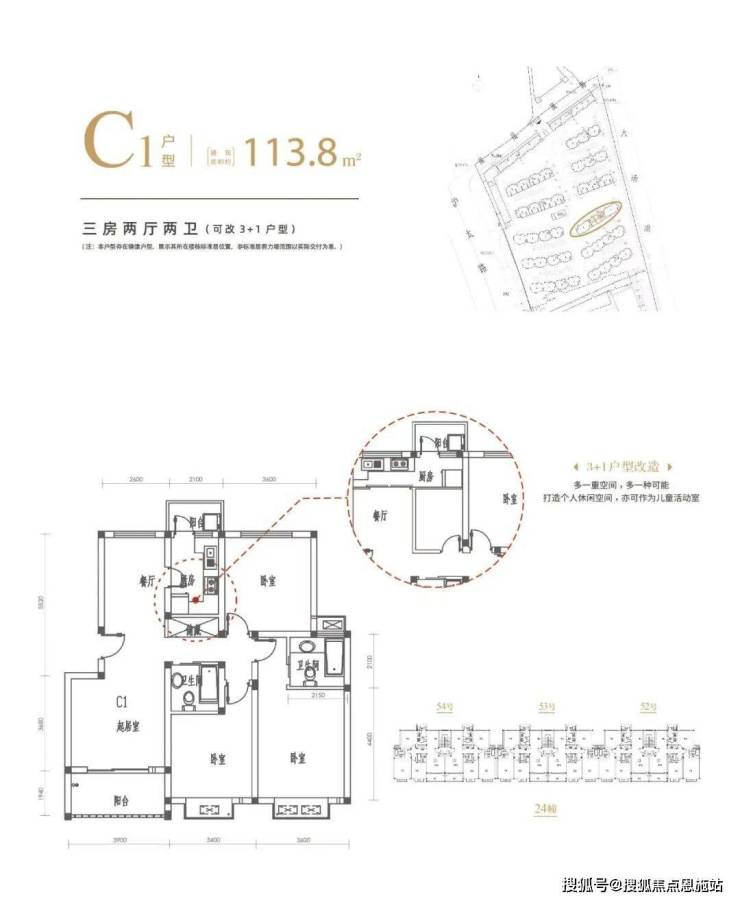 约58㎡一房,约90㎡二房,约113.8㎡三房
