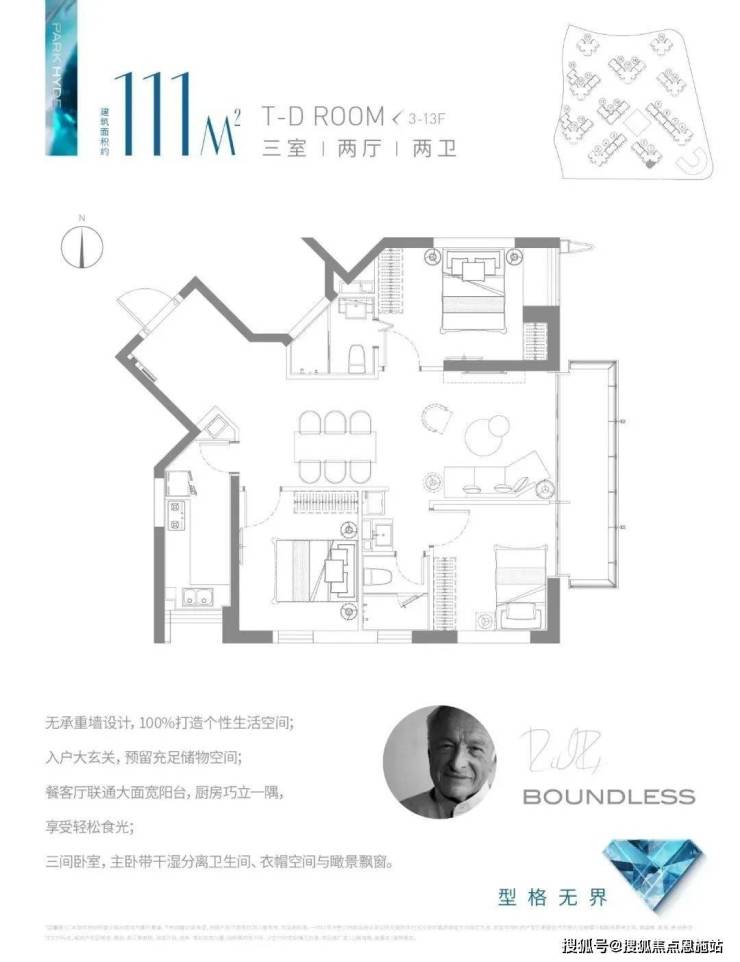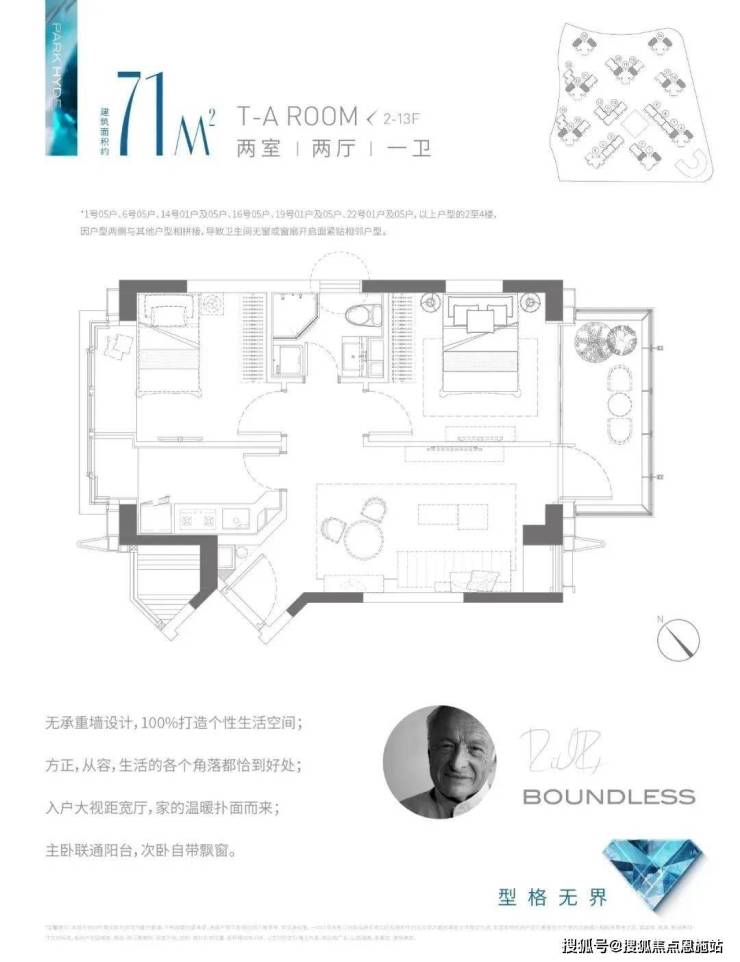 内部无承重墙设计,可以自由改造,实际使用面积超乎想像,得房率高达约85%。