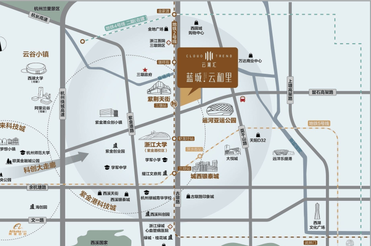 ◆地铁2号线三墩站上盖物业——蓝城TOD新著云和里,不仅高效接驳全城,同站对望紫荆天街,而且近邻西溪银泰城、西溪天街,约3公里范围内更有城西银泰城、大悦城、印象城等众多商圈环伺,一线都会繁华,悦赏奢阔人生。