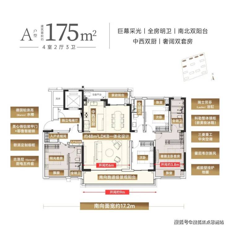 全明卫浴,全南北双阳台,全中西双厨,全系宽厅,全五开间朝南