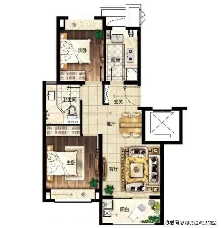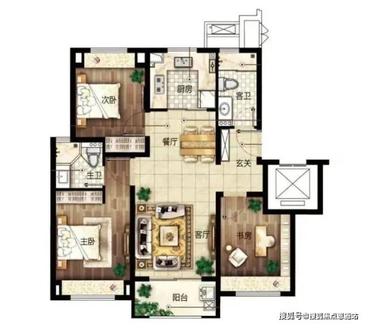 建面约96㎡3房2厅2卫