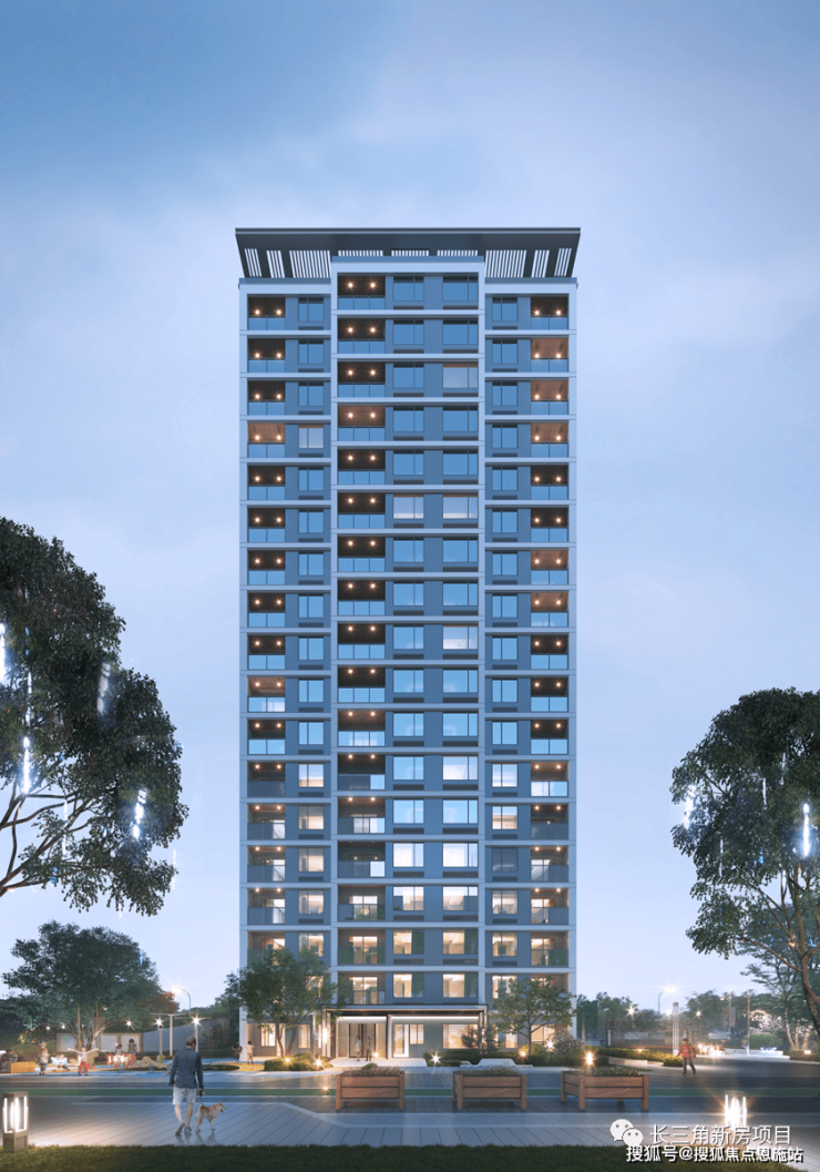 创新南北高低建筑排序,实现优越的采光视野;汲取极简建筑风格,以蓝色真石漆搭配大面积水灰色玻璃,极具辨识度的现代肌理,缔造高颜值的建筑审美。