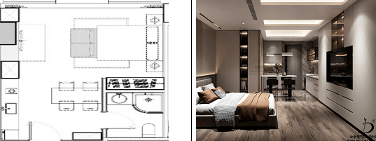 原餐厅位置,按实际需求灵活变通,实用多功能设计增效多重需求主卧套房设计,3.6米大面宽,明亮开阔,可放置2米的双人床,带L型衣帽柜,梳妆台,收纳空间丰富。次卧可放置1.8米双人床。