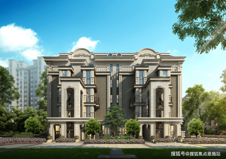 项目按照古典法式风格设计,运用黄金分割比例淬炼建筑外观,衬以山花、拱廊、石柱、铁艺灯等细节,突出轴线和对称美感。漫步其间,怡然自得,顾盼皆是法式风情!
