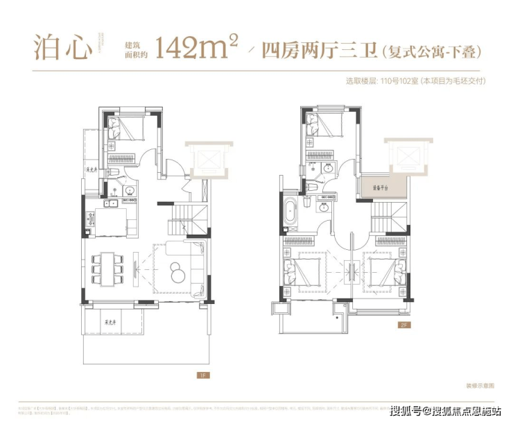 叠拼别墅:叠拼别墅总计四层,由上层和下层组成,上层的建筑面积大约为139平方米,而下层的建筑面积约为142平方米。上层的139平方米空间内设有四室两厅三卫,其特色在于阳台、露台以及飘窗的巧妙设计,露台平时可用于烧烤、休闲娱乐和桌面游戏等,空间感极佳。