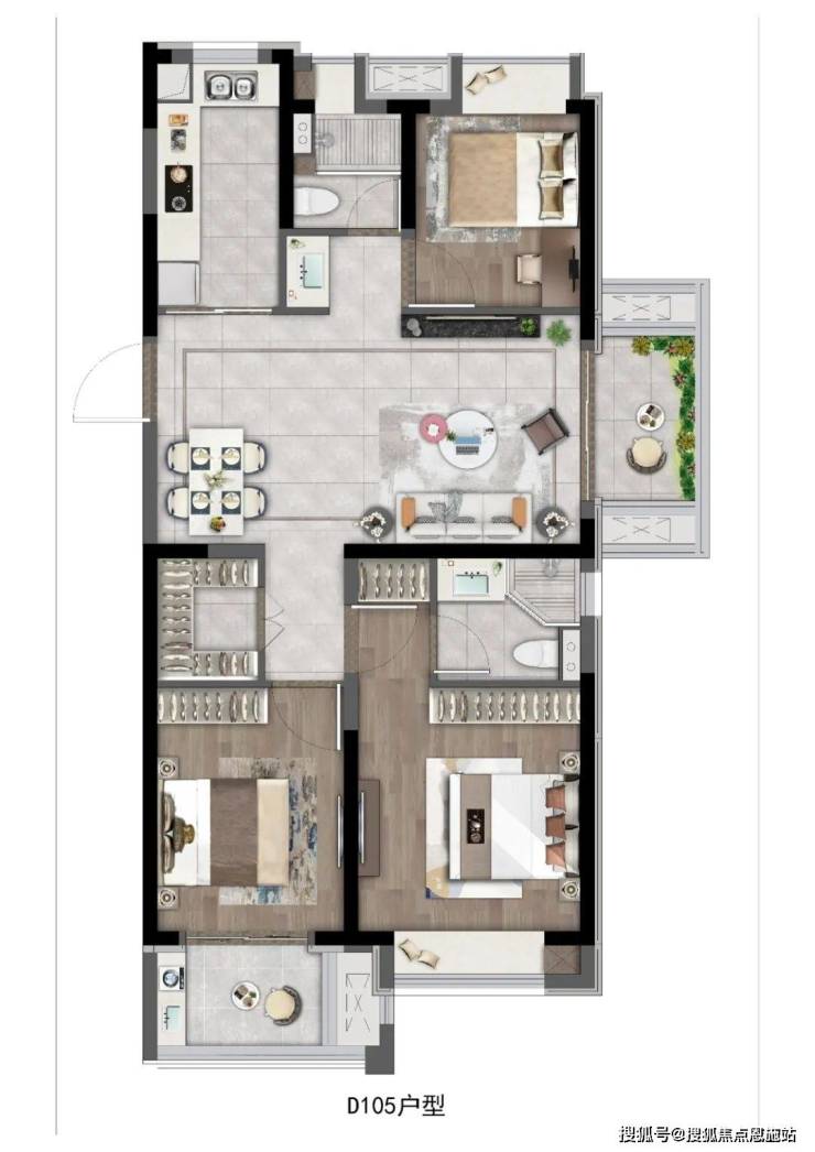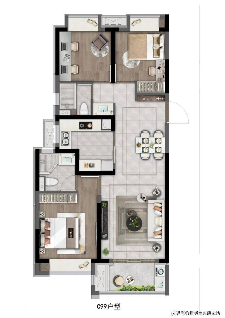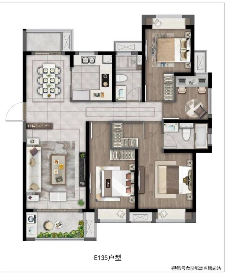 高层产品新增一个大4房户型, 建面约135㎡4房2厅2卫,还有约96㎡3房2厅2卫,约99㎡3房2厅2卫,约105㎡3房2厅2卫,户型设计的可圈可点。