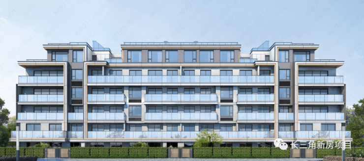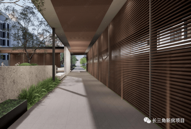 国际前言外立面:整个外立面设计拥有自然美感,用金属线条与仿木漆搭配底层涂料,塑造出都市绿洲的感觉;