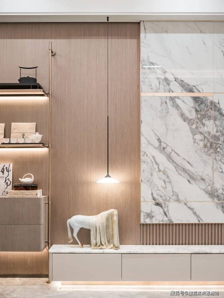 据我所知,上海能够交付大面积石材电视机背景墙的楼盘少之又少,最早是古北壹号和浦东星河湾,近几年也基本只有少量10万+的豪宅中偶尔出现。