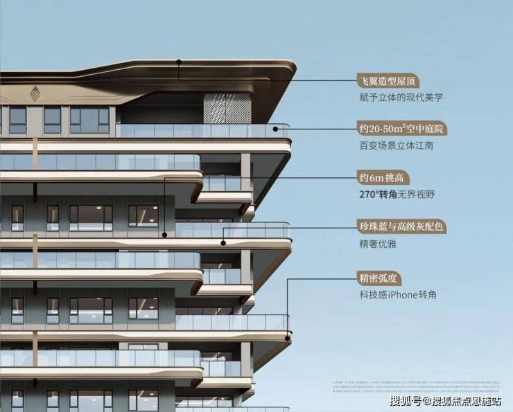 大师立面:其屋顶呈飞翼造型,转角有着如同 iPhone 般的精密弧度,尽显精奢优雅之态。