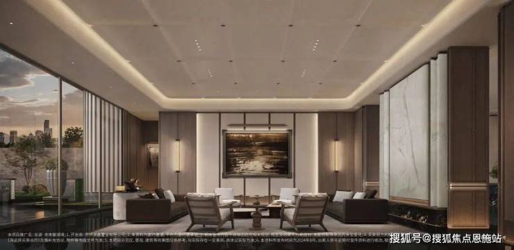 约1300m²高奢观瀑泳池会所:将轻氧健身、律动瑜伽、恒温泳池、沉浸书吧、高奢会客等功能区进行配置,全力打造圈层社交的专属私域。