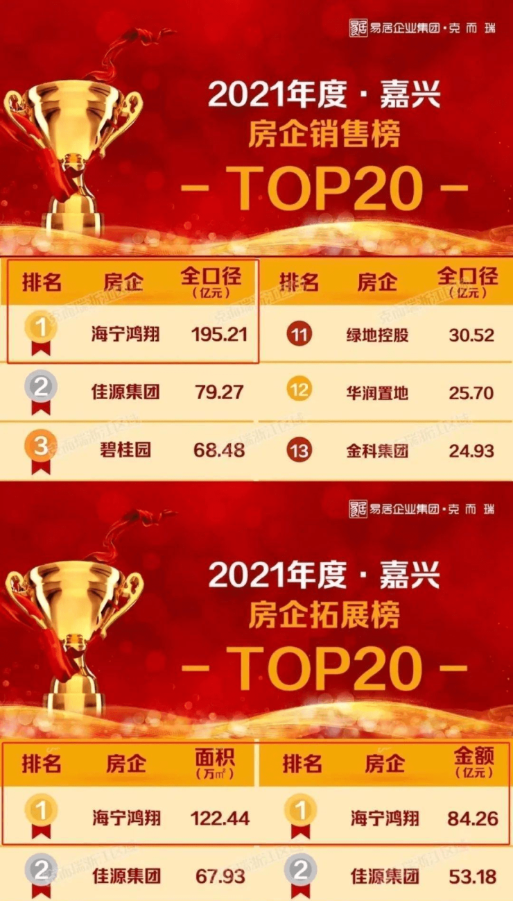 克尔瑞公布的2021年度嘉兴房企销售与拓展两大榜单中,鸿翔以绝对性领先优势斩获双料冠军,稳居TOP1,展现出一个本土品牌房企睥睨众品牌房企的魄力的同时,也在为打造的产品赋予附加值、更强的溢价能力以及购房者的信心!