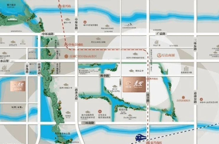 庆丰路,国际商务区当之无愧的纵向中轴,而槜李路,是城市推进向东发展重要的横向纽带,纵横黄金轴线交汇足以锚定高铁新城的价值高地。