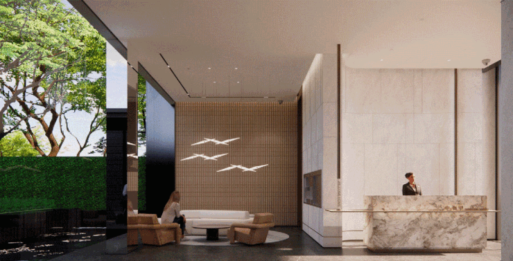 为了让业主享受尊贵的归家体验,小区设置酒店式 入户大堂,艺术砖、不锈钢等材料做成的墙体装饰,气派又美观; 大面积落地窗,接景入室,让整个社区如画般呈现!