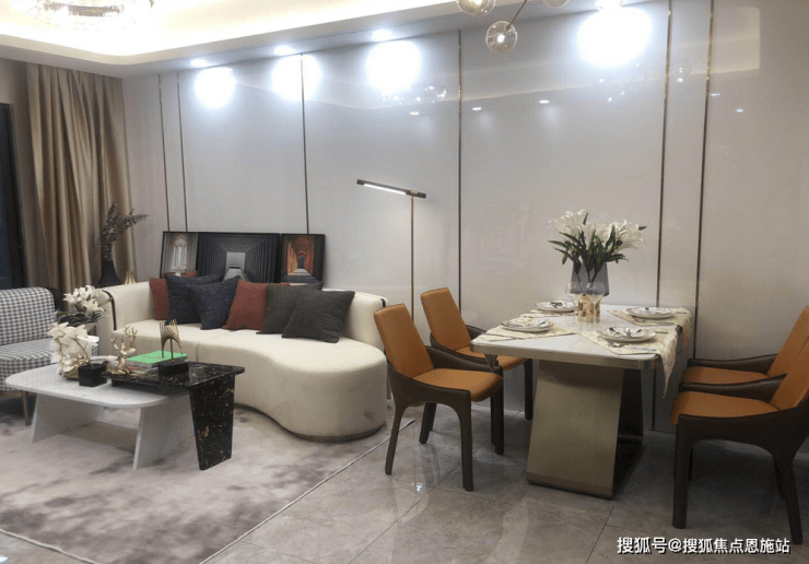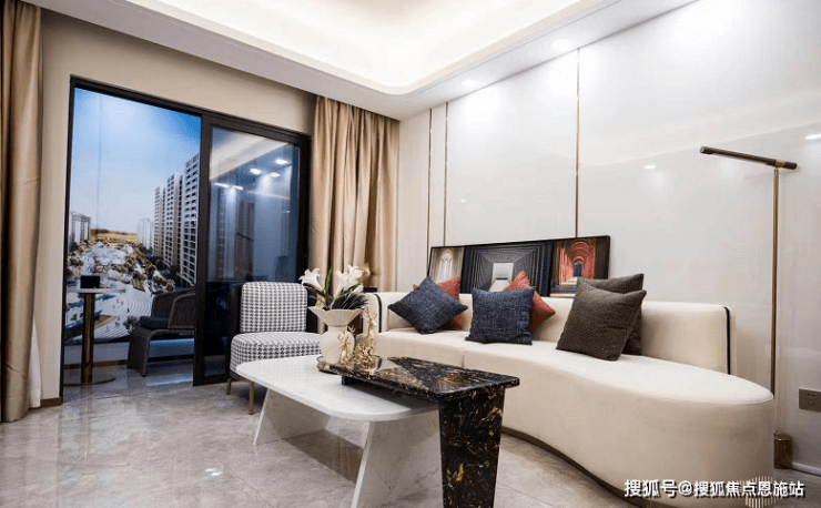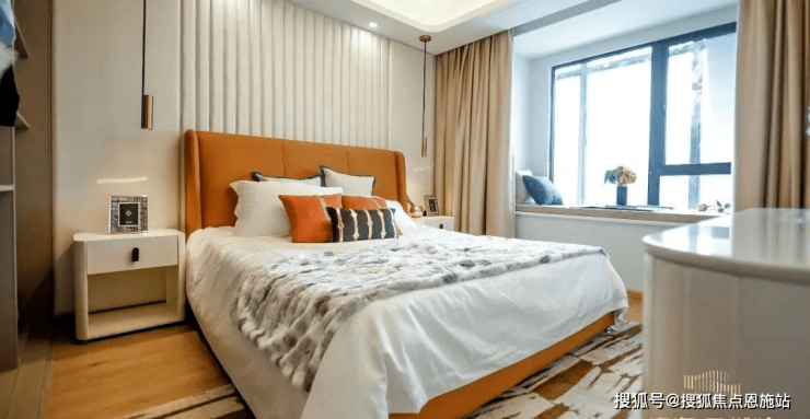 主卧带飘窗,约3.5米大开间。餐客厅一体式,奢阔尊贵体验。