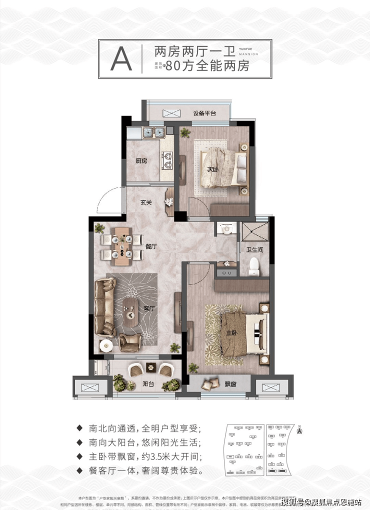 户型80方:南北通透,享受全明户型,南向大阳台,享受阳光生活。