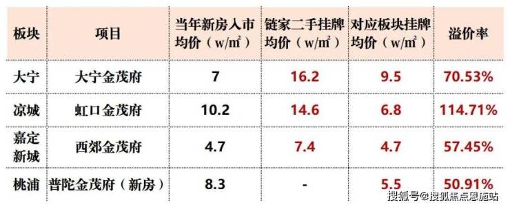 据贝壳数据统计, 金茂府与同板块二手房相比,挂牌均价比板块均价高出50%以上,最高溢价甚至突破114.71%!