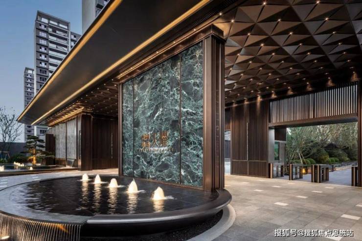无论是门头烫金醒目的案名,还是两侧修剪齐整的罗汉松,亦或是汩汩涌动的水景,都透露着不动声色的矜贵。