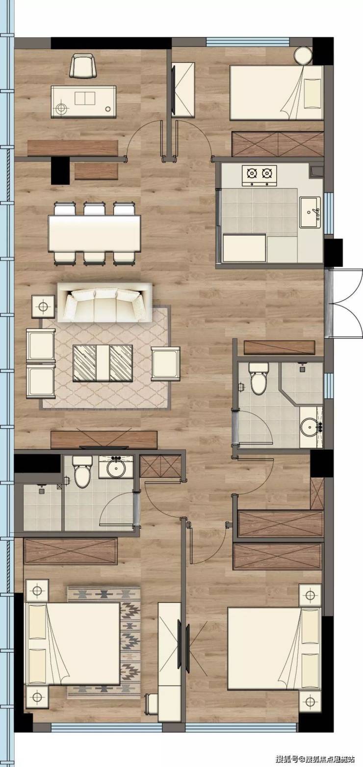 128㎡户型更加震撼,四室两厅两卫之余,还有全落地玻璃设计,270°鸟瞰钱塘江,拥有IMAX般的超级视野,像极了时尚偶像剧里的家居腔调。就在这一方天地里,做人生的主角。
