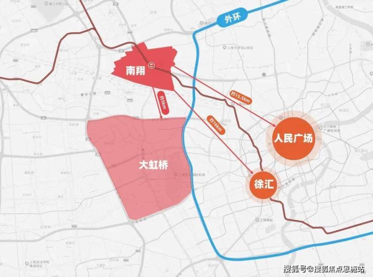 从整个上海的版图来看,南翔位于外环外。距离大虹桥很近,只有约5km;距徐家汇约16km,人民广场约15.5km,离市区也不算太远!