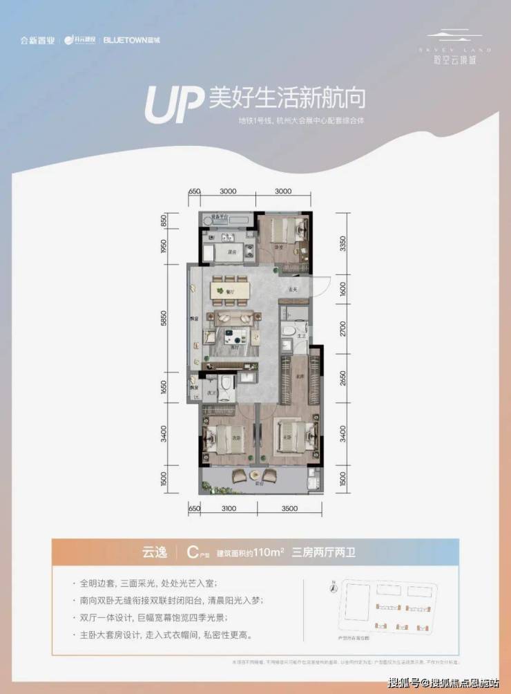 除了97方户型之外,另外还有建面约102㎡、110㎡两个户型可选择。