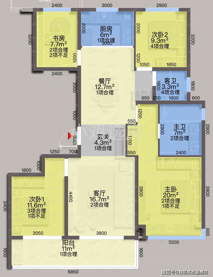 建面约135㎡四室两厅两卫户型: