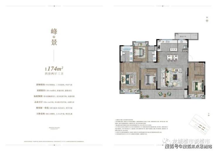 174m2户型优势:极致5开间朝南,户型方正,南北通透,拥有小洋房带来的超高得房率,堪比市面200m2的大平层,南向面宽近16.6米,拥有6.1m超宽客厅和9.4m宽敞大阳台,客厅+阳台46m2,彰显极致尊贵感和仪式感