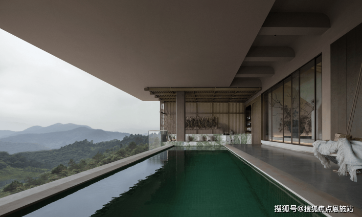 流金VILLA以 金色窗框+高窗墙比为特色,流云VILLA则是悬浮在整个项目 最高的地势上,被称为“云梢上的月光宝盒”。建筑层层叠落,与青山厚韵交相辉映,抒写着崭新的东方人居语境。