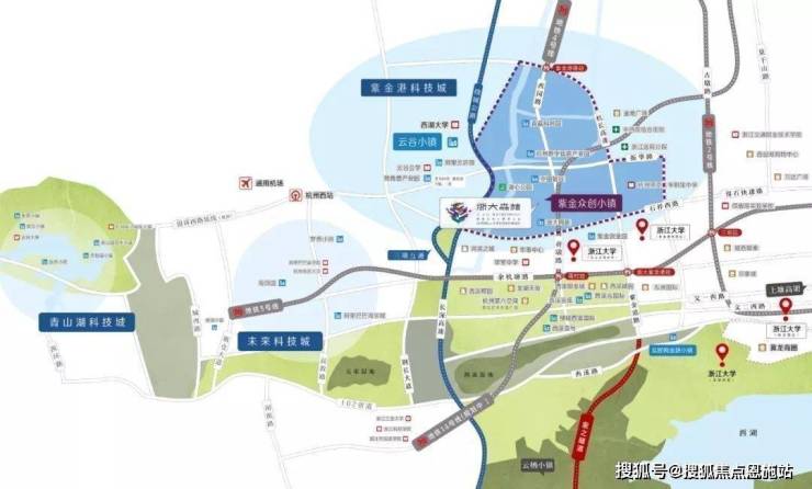 项目整体位于小镇西侧,东至西园八路,南至留祥路,西至莲池南路,北至苏嘉路,总面积约0.91平方公里。是西湖区人民政府与浙江大学携手共建的一个以高端信息经济为主导的创新创业平台。在项目周边3公里范围内,汇聚了大量生活、商业配套,如西溪湿地、龙湖天街、西溪银泰等,同时也云集了诸多产业集群,如阿里云谷、独角兽产业园、菜鸟总部等,同时作为浙江大学产学研最重要的实践基地之一,距离浙江大学紫金港校区西门仅1公里;所以整个项目可以说是如众星捧月的宠儿。杭州西湖区【浙大森林】售楼处热线:400-7802-070