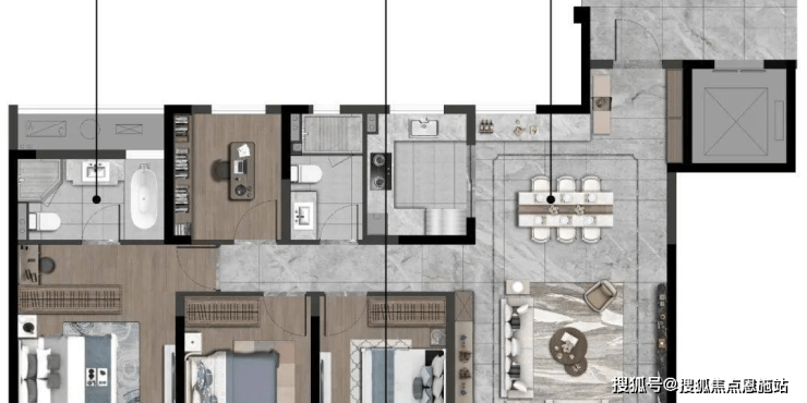 嘉兴「万科·臻境雅园」售楼处电话:400-811-8224目中,有几大主打户型十分亮眼,其中建面约127㎡户型,三卧+客厅四开间朝南布局,主卫四件套配置餐、客、阳台连通的公区设计,避免了视觉上的拥挤,营造出明朗大气的空间气场,亲朋好友欢聚一堂,惬意更自在。