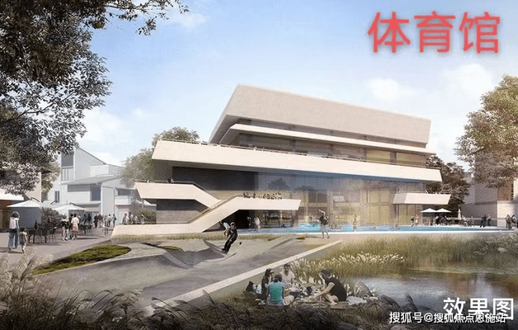 三层现代运动馆,1F游泳馆、2F篮球馆、3F羽毛球馆(在建中)