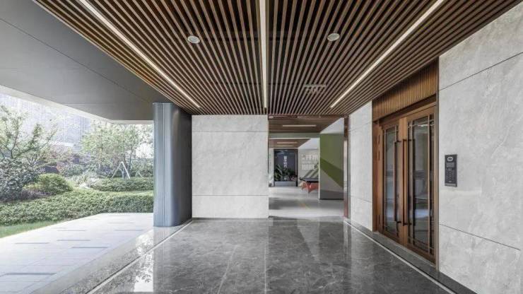 每一次归家,总有尊荣礼遇,盛迎从世界从容归来的你。进入建筑空间前,高级灰的景墙配合宅间小品花园,组成极具仪式感的入户感观。也让业主归家的每一步,彰显从容气度。