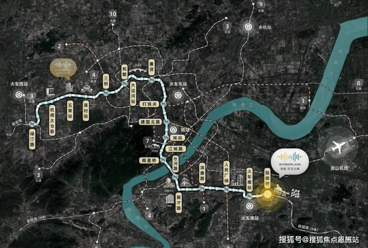 同时,从姑娘桥站出发,地铁2站就能到“杭州南站”,南站新城的规划清晰可见,彩虹天空之城明显在“南站新城”的辐射范围内。