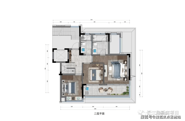 都是四室两厅两卫的户型设计,上叠带露台,下叠自带花园
