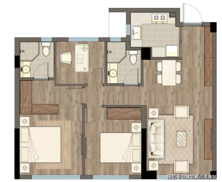99户型做到了三开间朝南的环境格局,9.7m超大瞰景面宽。每个清晨被阳光唤醒,江风穿堂而入,满满的幸福感。