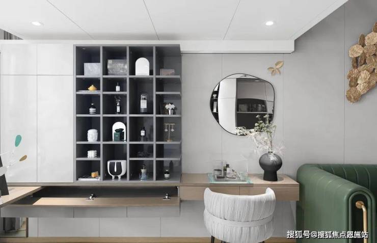 在光影所建构的空间内,将美好以不同方式留下。专为艺术青年打造的线性空间,凝练简洁。牛油果绿皮革长条沙发,哑光质地的特殊材质与透软的浅白地毯形成强烈的视觉冲击,不同材质与颜色的对视感,一如趋势青年冷酷的外表与火热的内心。和而不同,便是他们的生活态度。