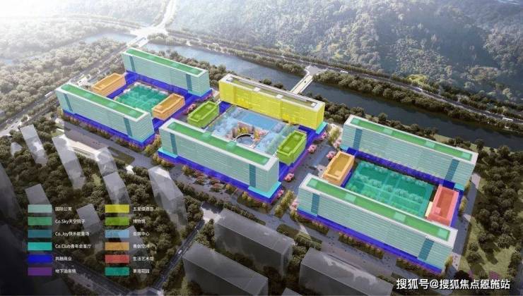 这座83万方的城市小镇,选择用“未来生活融合体”来破局。集合Co.Flat国际公寓、Co.Yards共融商业、Co.Vita生活共同体3大业态,并在此之上确定了所有的功能板块—— 1大居住空间、3大共享空间、8大生长空间,12大“生活空间”,构建出小镇独有的“自循环生态圈”。