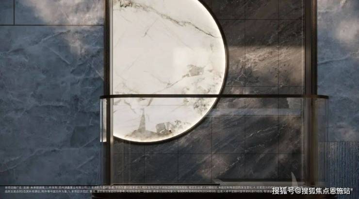 圆月洞藏:取传统苏州造园中的窗景手法,景墙镶嵌透光云石,象征圆满和睦