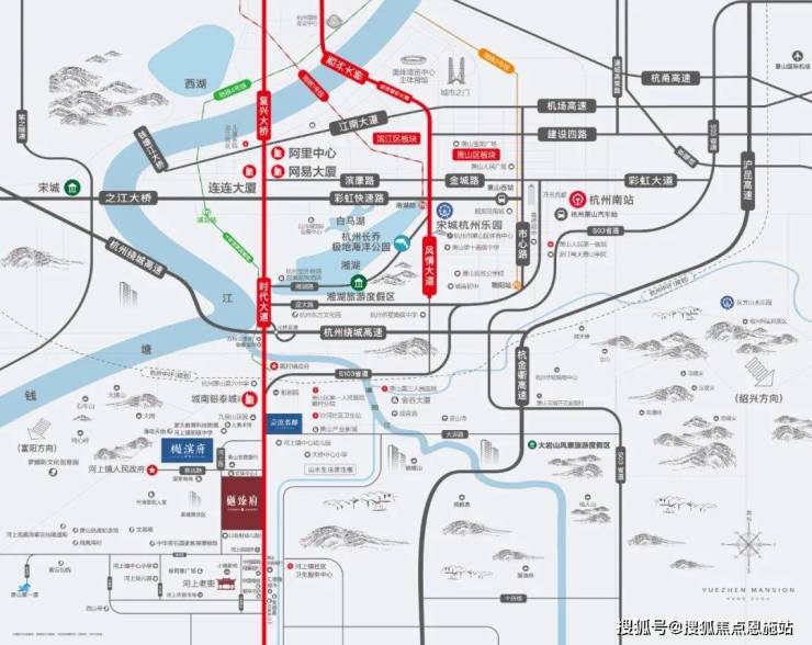 未来时代高架通车后将快速拉近滨南新城与滨江的距离,届时从樾臻府出发半个多小时就可到达滨江。