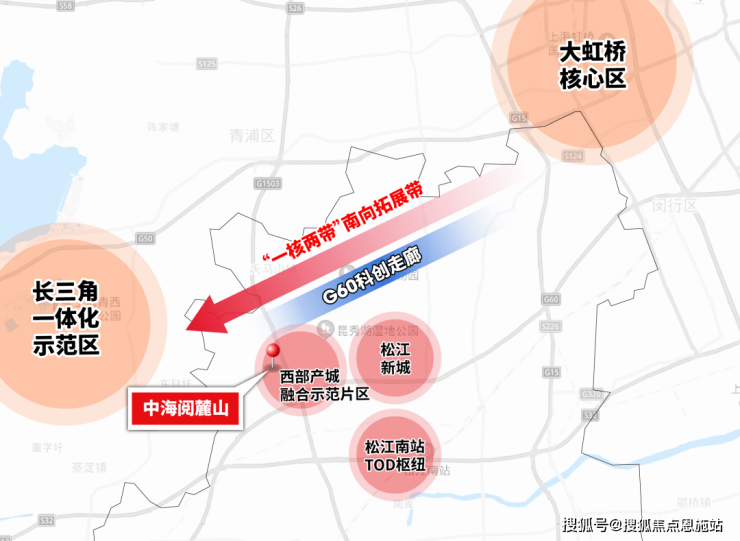 项目周边松江新城、G60科创走廊、长三角一体化示范区、松江南站TOD四大重量级规划环绕。